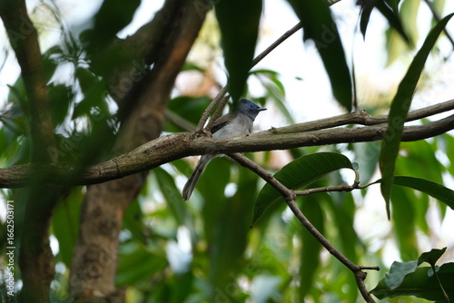 © Cheng, Fototapeta premium Black-naped Monarch with blue head perched on tree Taiwan Taipei City Da’an Forest Park