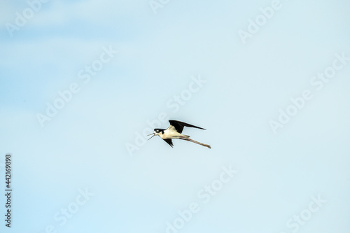 Obraz premium Black-necked Stilt Himatopus mexicanus in Flight Room for Text Title