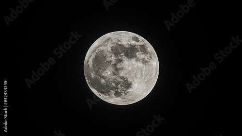Naklejka premium Black night sky with a bright full moon, tranquil and serene, nature's nightlight