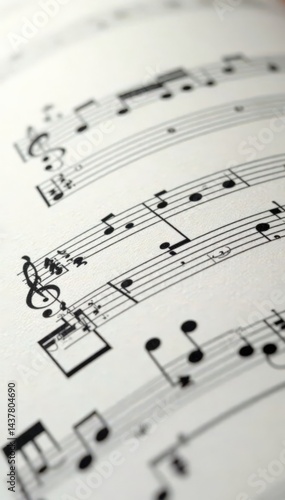 © Momay, Fototapeta premium Black notes on white background with musical staff and rests , staff, notes, rhythm