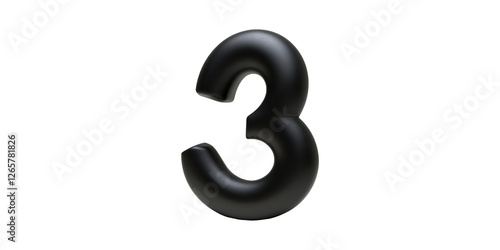 © sweet_mellow, Fototapeta premium Black number three isolated on transparent background