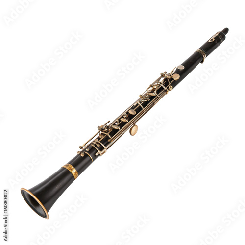 © ArtBeauty, Fototapeta premium Black oboe with gold keys on a white background musical instrument woodwind