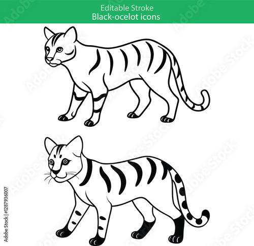 © Preote, Obraz premium Black Ocelot Icons Editable Stroke, Line Art, Wild Cat, Vector, Illustration, Design, Graphic, Clipar