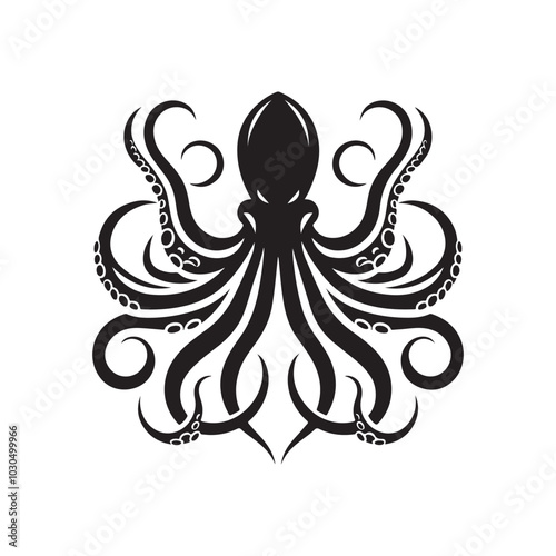 Obraz premium Black Octopus Silhouette Vector Illustration Icon on White Background.