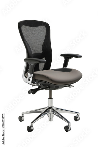 © Mustafa Kawa, Fototapeta premium black office chair placed on white transparent background