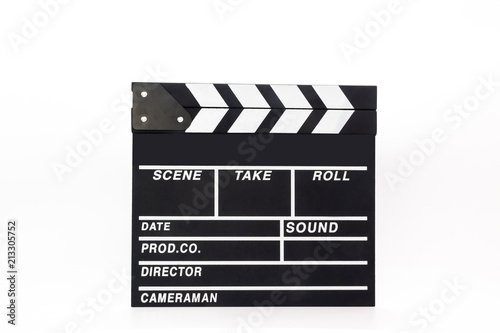 Obraz premium Black open clapper board isolated on white background