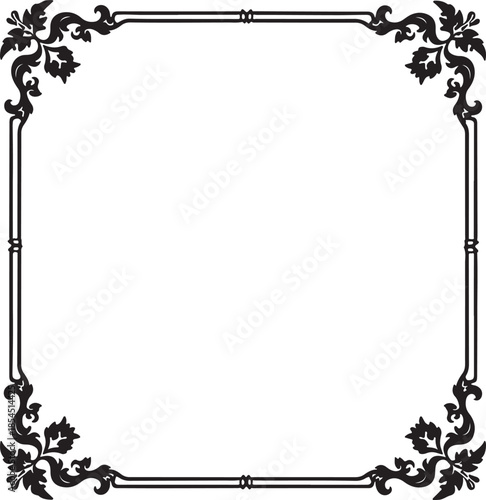 Obraz premium Black ornate corner border with floral elements frame