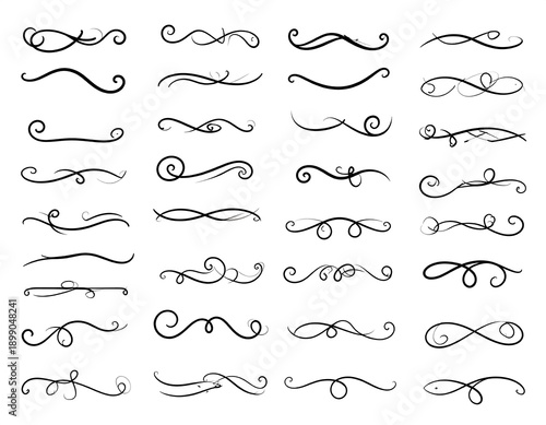 Obraz premium Black ornate swirly design dividers in multiple styles on a white background