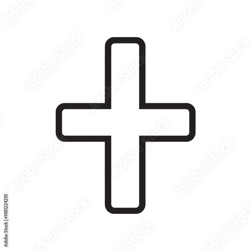 Obraz premium Black outline defines a plus symbol with rounded edges on a white backdrop