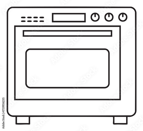 Obraz premium Black outline drawing of a simple rectangular microwave oven with various...