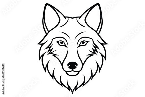 Naklejka premium Black outline drawing of a wolf head facing forward, minimalist style art