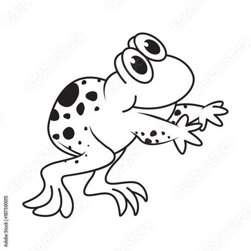 Fototapeta premium black outline happy vector cartoon frog walking