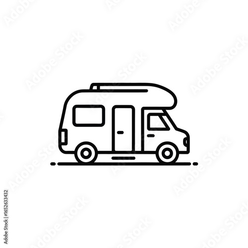 © Alvi, Fototapeta premium Black outline icon of a camper van on a white background motorhome travel