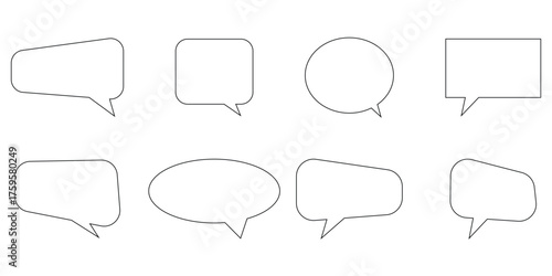 Obraz premium Black outline modern isolated chat-box symbol sets on white page. Comment box...