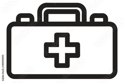 Obraz premium Black outline of a first aid kit with cross symbol presented on white backdrop