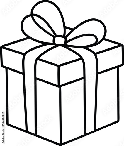 © Abdul, Obraz premium Black outline of a square gift box with a bow present