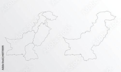 Obraz premium Black Outline vector Map of Pakistan with regions on white background