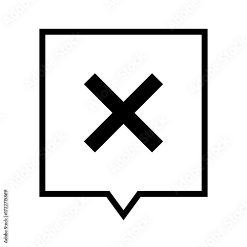 © Hasheb Anzar, Obraz premium Black outlined square chat bubble with X mark, minimal cancel or error notification symbol for message, dialogue or app UI, PNG with transparent background