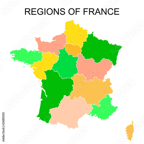 © klerik78, Fototapeta premium Black outlines map of France with names on white background.