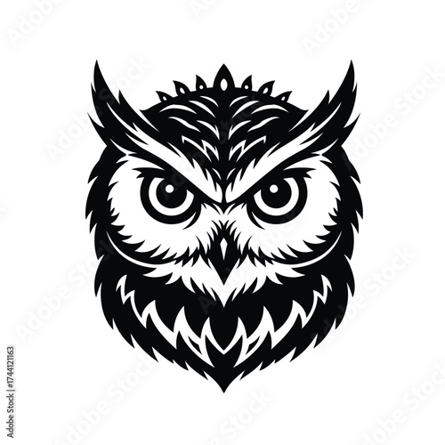 © dipu, Obraz premium Black owl head with intricate details on white background