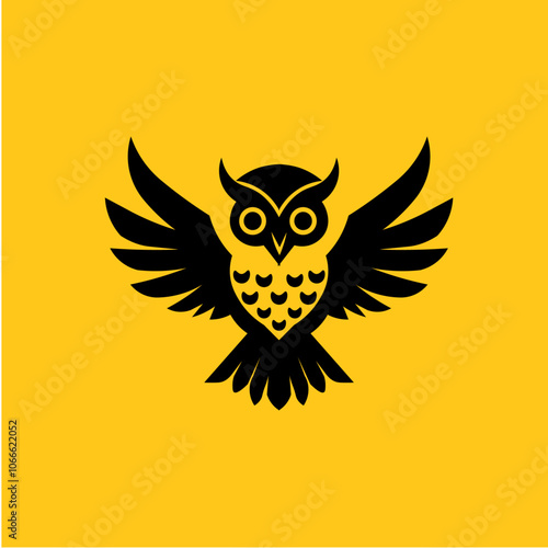 Fototapeta premium Black Owl Minimalist Yellow Background Logo