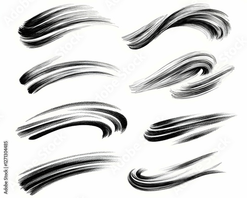 Fototapeta premium Black paint brush strokes, design elements, white background, graphic design resource
