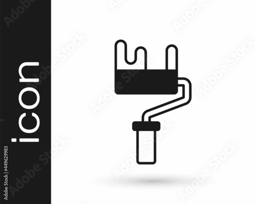 © Kostiantyn, Obraz premium Black Paint roller brush icon isolated on white background. Vector
