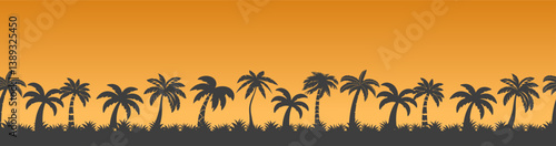 Naklejka premium Black palm trees pattern on sunset background. Palm tree summer logo, coconut...