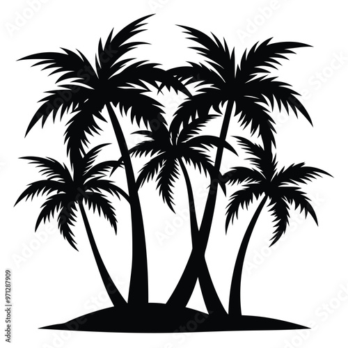 © tajimpranto, Obraz premium Black palm trees silhouette vector.