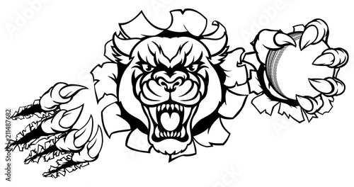 Obraz premium Black Panther Cricket Mascot Breaking Background