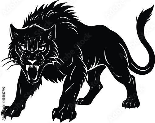 Naklejka premium Black Panther Illustration with Sharp Teeth and Menacing Gaze on White...