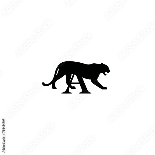 © Isniyah, Obraz premium Black panther silhouette above the letter a on white background design