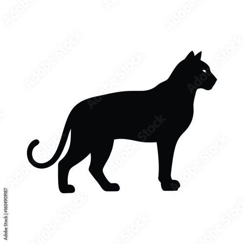 © Online Graphic BD, Fototapeta premium Black panther silhouette standing profile isolated on white background