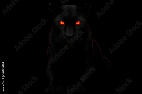 © ranga, Obraz premium Black Panther with Fiery Red Glowing Eyes on a Dark Background