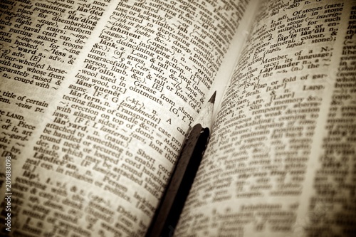 © aparagraph, Fototapeta premium Black pencil on old book