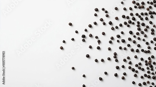 Fototapeta premium Black Peppercorns Scattered on White Background