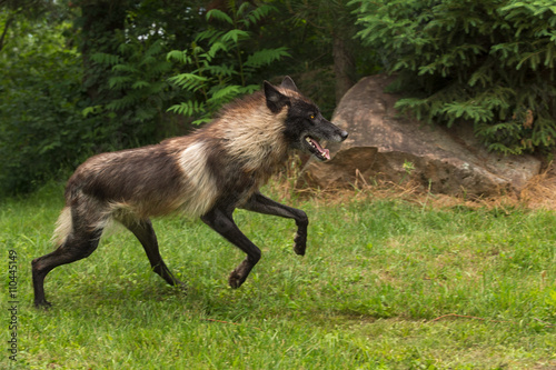 Obraz premium Black Phase Grey Wolf (Canis lupus) Jumps Forward