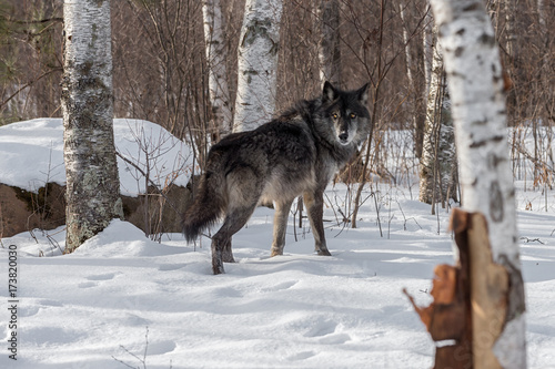 Fototapeta premium Black Phase Grey Wolf (Canis lupus) Looks Back Over Shoulder