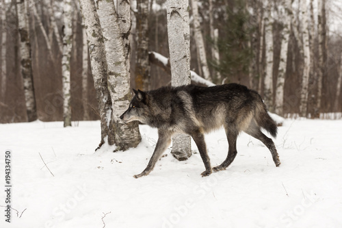 © hkuchera, Naklejka premium Black Phase Grey Wolf (Canis lupus) Walks Left Through Woods
