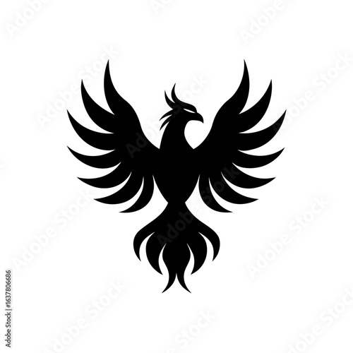 © Dhanopati, Fototapeta premium Black phoenix rising on transparent background silhouette