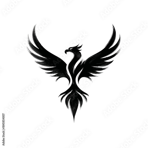 © ikk.gtg, Fototapeta premium Black phoenix soaring artistic illustration of a mythical bird on white background