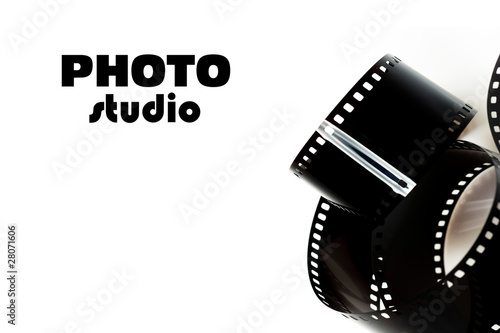 Obraz premium black photo film and text photo studio. isolated on white backgr