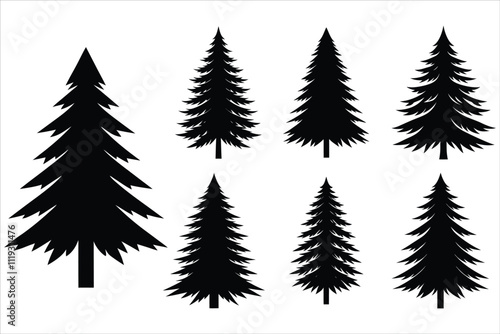 © BINDASBIPLOB, Naklejka premium Black Pine Tree Vector Silhouette for Nature Art