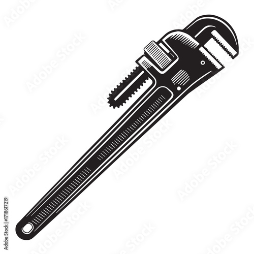 © Craftdot, Obraz premium Black pipe wrench Silhouette Vector, High Quality Illustration on White Background