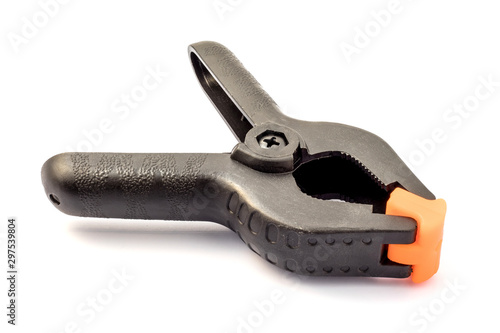 © Igor Nikushin, Obraz premium Black plastic clamp isolated on white background