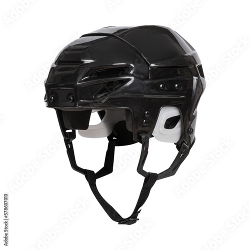 © Isolated On White, Naklejka premium Black Plastic Protective Helmet for Ice Hockey Sports Equipment on White Background