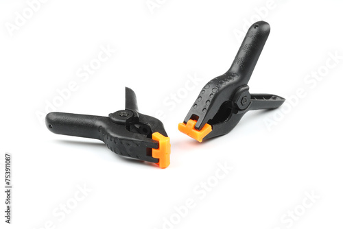 © bt1976, Obraz premium black plastic spring clamp isolated over white background