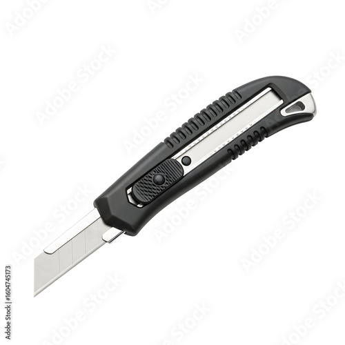 Obraz premium Black Plastic Utility Knife with Metal Blade.