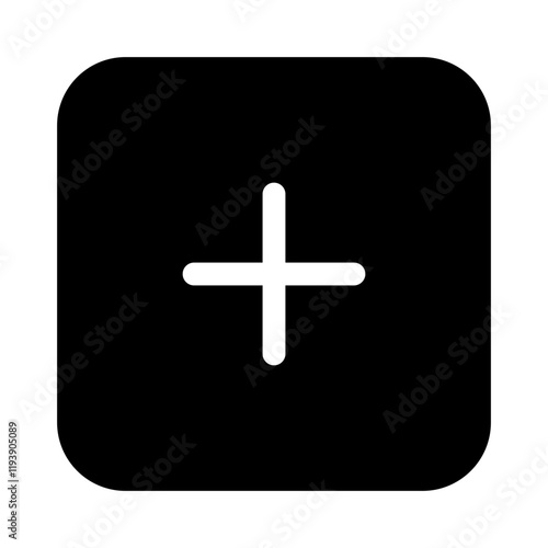 Fototapeta premium Black plus sign icon inside a rounded square button.Add. Increase. Positive change. Simple interaction.Minimalistic black plus icon for apps, interfaces, and designs