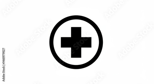 © Muniba, Obraz premium Black plus sign in a circle isolated on white background